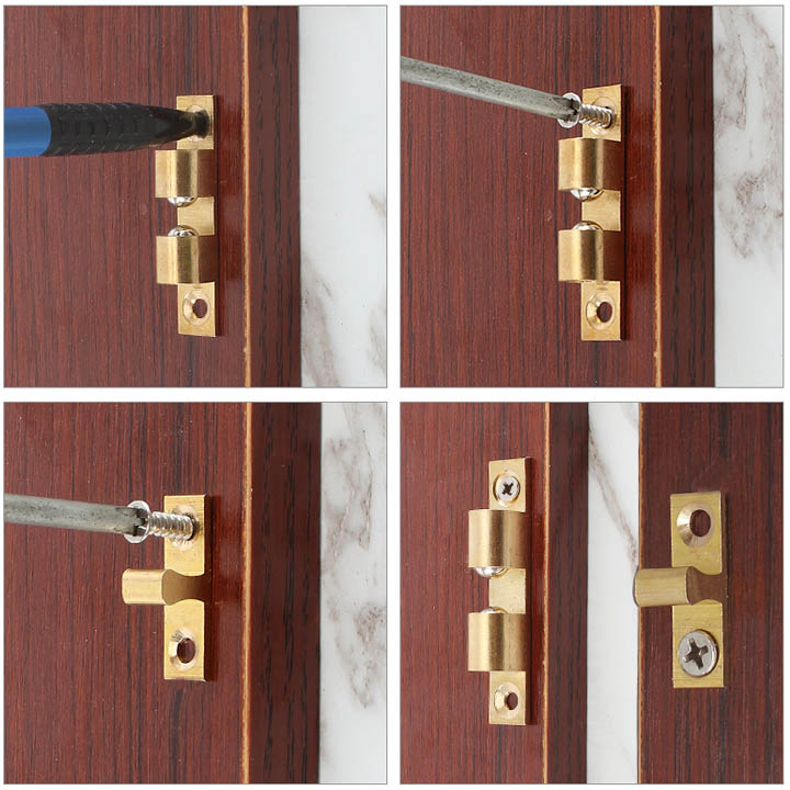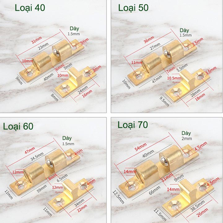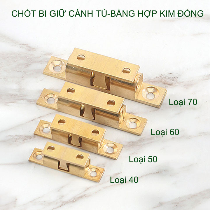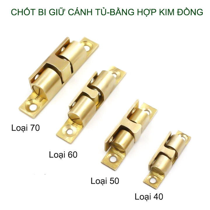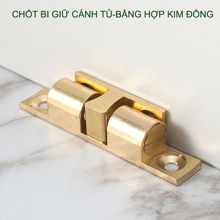 Chốt bi bằng đồng giữ cánh tủ, cánh cửa được thiết kế đơn giản, đẹp, chắc chắn làm bằng hợp kim đồng rất bền. Có bi giúp giữ cánh tủ chắc chắn, đồng thời có điều chỉnh độ chặt giúp phù hợp nhu cầu sử dụng