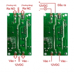 + Các cổng: +12V, GND, Push, Rơle cổng NO (thường mở)-NC (thường đóng)