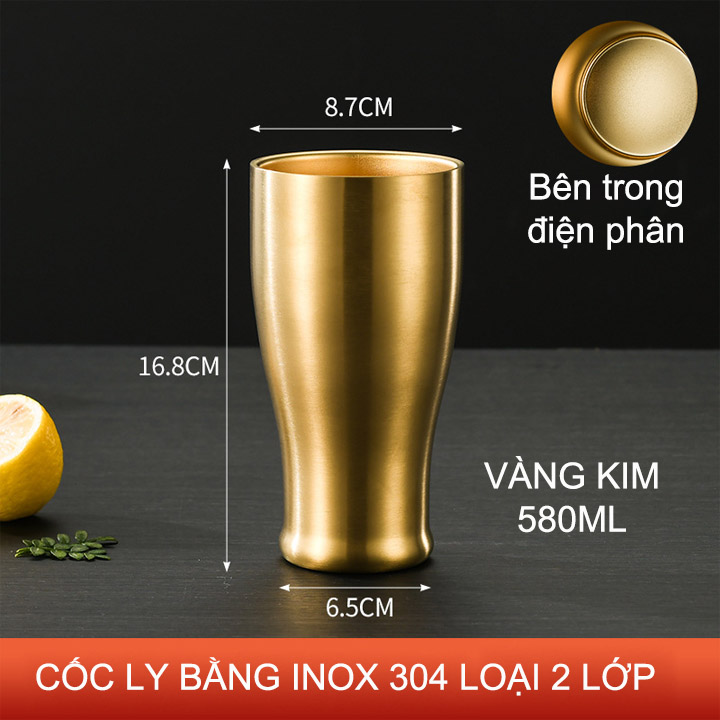 Cốc (ly) bằng inox 304 loại 2 lớp chống nóng dùng uống trà, cà phê, sữa (580ml có nhiều màu)