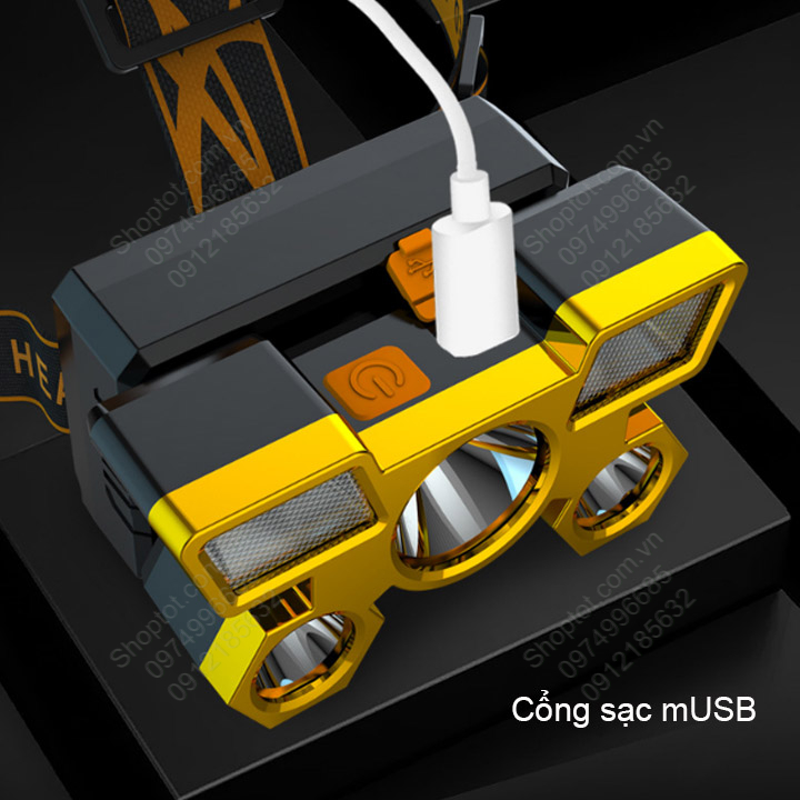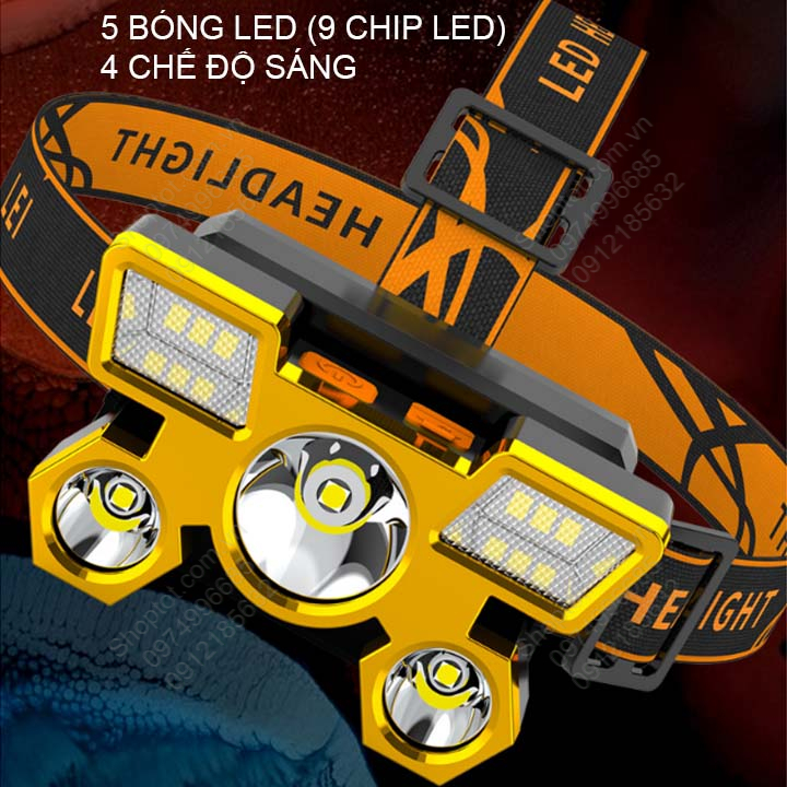 Đèn Pin LED siêu sáng đội đầu 5 bóng led (9 chip LED) với pin sạc gắn sẵn bên trong