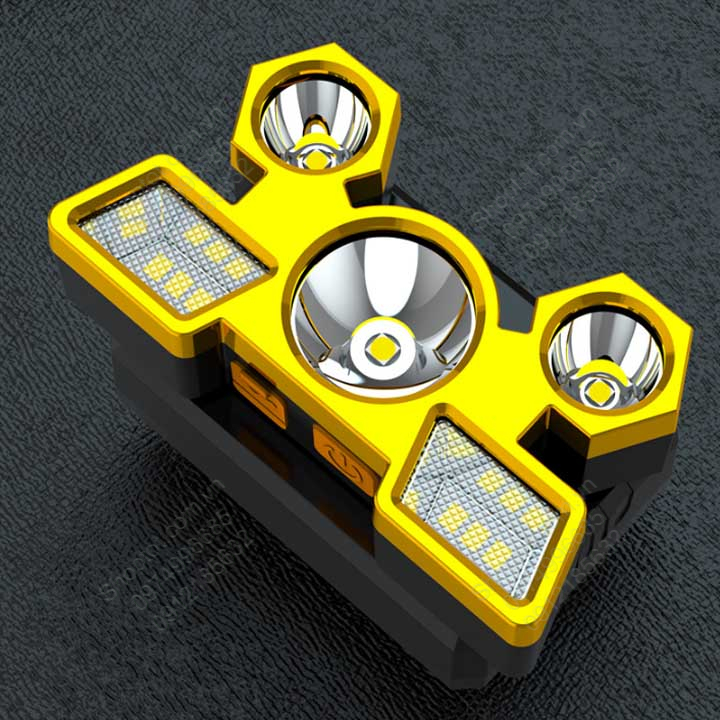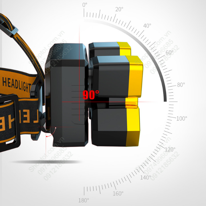 Đèn Pin LED đội đầu siêu sáng trang bị 5 pha sáng với 9 Chip led: 1 pha ở giữa có 1 bóng led T6; 2 pha 2 bên dưới mỗi pha 1 bóng T6; 2 pha 2 bên phía trên mỗi pha 3 bóng XPE chiếu rộng. Đây là thiết kế đột phá với 5 Pha và 9 Chip LED cao cấp siêu sáng (Chip Led Cree Mỹ T6 và XPE siêu bền), độ sáng siêu khủng, có thể điều chỉnh góc chiếu 90 độ.