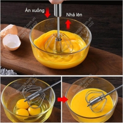 Dụng cụ đánh trứng thông minh bán tự động H012 được làm bằng inox 304 với cơ chế hoạt động rất thông minh sáng tạo: Chỉ cẩn ấn tay cầm lên xuống và đầu đánh trứng quay tít giúp dễ dàng đánh nhuyễn trứng, kem, bơ hay bột làm bánh
