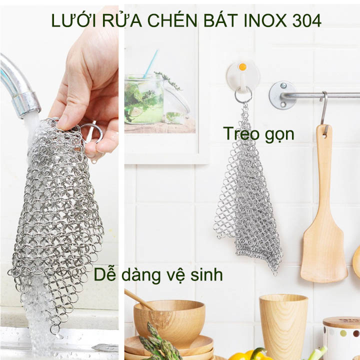 Lưới rửa bán chén thế hệ mới bằng inox 304 được thiết kế thông minh, sáng tạo, tiện dụng chuyên dùng cọ rửa chén bát, xoong nồi, chảo, cốc ly... nhanh và an toàn